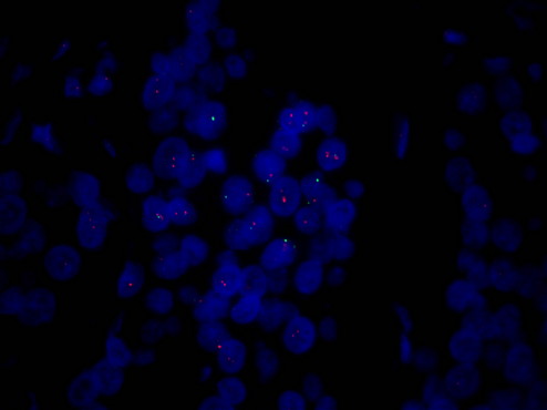 熒光顯微鏡下的乳腺癌HER2檢測