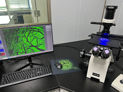 近期,明美深圳區域工程師安裝倒置熒光顯微鏡MF53-N搭配2100萬像素顯微鏡相機MSX11,以用于活細胞培養,熒光細胞觀察,要求能清晰觀察細胞形態和熒光轉染情況。整體效果贏得用戶認可。