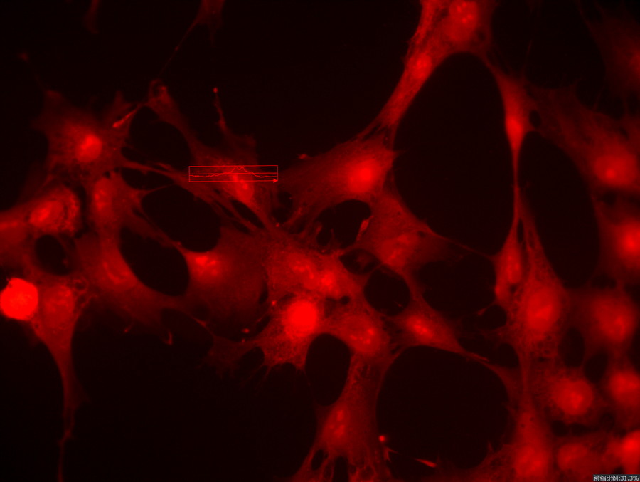 能量曲線使用非常簡單,選中工具后可以在成像窗口或圖片上畫線,然后系統就會在線上生成一個曲線圖,紅藍綠三色熒光分別呈現為紅藍綠三色曲線。曲線圖以用戶畫的線為X軸,以光強為Y軸,Y軸有100%和50%兩條線,可快速估算熒光強度。