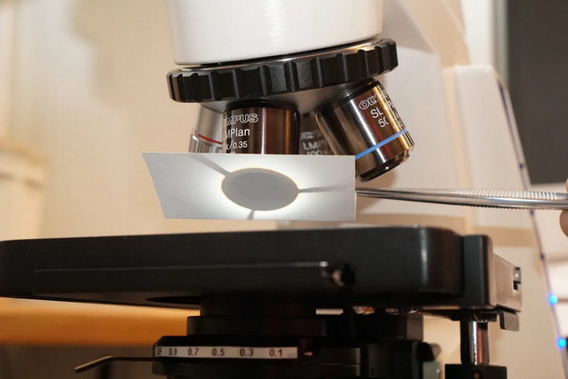 簡易暗場觀察只需在阿貝聚光鏡基礎(chǔ)上加入暗場環(huán)即可實(shí)現(xiàn),這個暗場環(huán)通常安裝于聚光鏡底部,用推拉插板或者32mm濾光片托架安裝都可以,一般簡易暗場到N.A0.6效果都還行。也就是說最高搭配Plan 40X或者Plan Fluo 20X物鏡,更高N.A的物鏡可能需要在聚光鏡和玻片底部之間滴油來提升照明N.A.