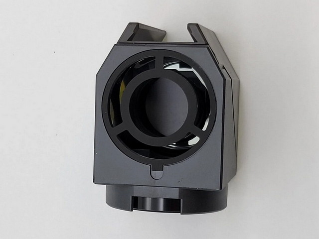 反射暗場必須搭配金相明暗場物鏡。金相明暗場物鏡要比普通物鏡粗很多,因?yàn)樵诮鹣喾瓷浒祱鲋校祱稣彰鞴饩€并不通過物鏡聚焦到樣品上,物鏡主體以外要留出一圈空間給暗場照明的光通過,另外物鏡前端可以看到外殼是明顯向前端延申的,以讓暗場照明光傾斜反射到樣品上,在到達(dá)前端反射前,會有一圈環(huán)形的透鏡或棱鏡對光線進(jìn)行調(diào)整。