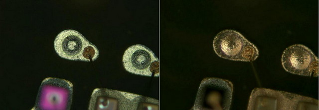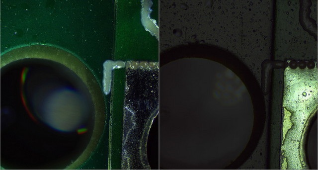 在金相領(lǐng)域,暗場觀察通常搭配明場觀察使用,來呈現(xiàn)明場觀察下無法發(fā)現(xiàn)的氣孔、凸起、劃痕、灰塵等瑕疵,比如檢查芯片焊點(diǎn)等芯片檢查工作。