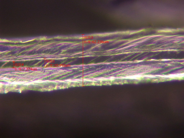 在一些孔隙率差異或折射率梯度的聚合物和陶瓷薄片,比如薄膜、光纖中,使用明場觀察會有邊緣模糊的問題,導(dǎo)致尺寸測量存在不準(zhǔn)確的問題,使用暗場觀察可以更準(zhǔn)確呈現(xiàn)邊緣,使尺寸測量更加準(zhǔn)確。