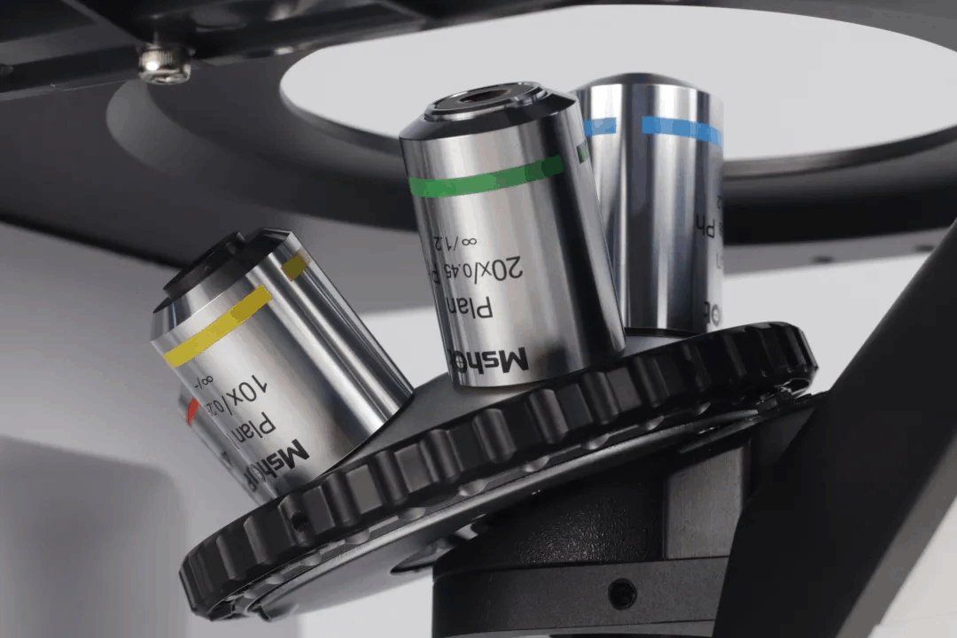 編碼式物鏡轉盤:物鏡轉盤切換可與明美顯微成像系統軟件聯動,實現物鏡倍率信息、軟件標尺、光強及成像參數的自動切換,并有語音提示和數顯屏幕雙重提示,大大方便使用。