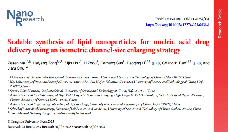 在生物醫藥領域,脂質納米顆粒(LNPs)作為核酸藥物遞送的重要載體,受到越來越多的關注。一項發表在《Nano Research》上的研究,利用明美倒置顯微鏡MI52-N,在解決脂質納米顆粒(LNPs)大規模合成中粒徑一致性的問題方面,做出了卓有成效的探索推進。
