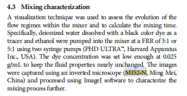 明美倒置顯微鏡MI52-N 在這項研究中發揮了關鍵作用。其高分辨率和清晰的成像能力,使得研究人員能夠精確觀察微流控芯片內的流動情況,從而準確測量混合時間。這為研究人員提供了重要的數據支持,幫助他們優化合成參數,確保合成的 LNPs 具有一致的物理性質。