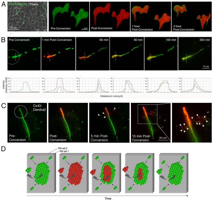 Connexin43-Dendra2揭示縫隙連接蛋白Cx動態