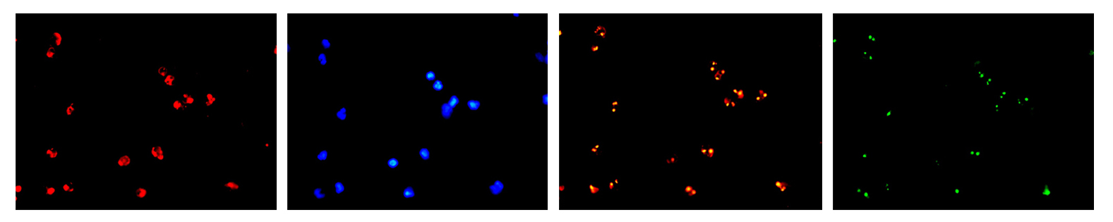 (MF43-N+MC50-S搭配四波段光源拍攝的FISH圖像)