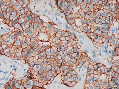 免疫組化,通俗的含義就是把癌組織中的癌細胞放大到分子級別,通過顯微鏡看看在這個水平上有哪些跟別的細胞不一樣的特征,因為蛋白質在體內出現的位置不一樣,有的蛋白遍布全身,有的蛋白只出現在某些特定的器官與組織中,通過直接直觀地觀察組織和細胞里是否存在一些蛋白質的方法,來確定腫瘤的分子分型,判斷腫瘤的原發位置,腫瘤惡性程度及預后效果。