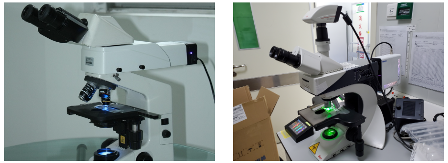 根據(jù)上述光學(xué)顯微鏡對病毒的檢測方式,主要有兩種方式,一是使用熒光顯微鏡檢測熒光染料標記病毒本身的熒光信號或入侵細胞免疫反應(yīng)產(chǎn)生抗體物質(zhì)熒光信號,二是使用明場方式觀測IHC或者HE染色的細胞或組織的病理形態(tài)。