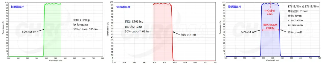濾光片的三種類型:長通(LP)、短通(SP)、帶通(BP)
